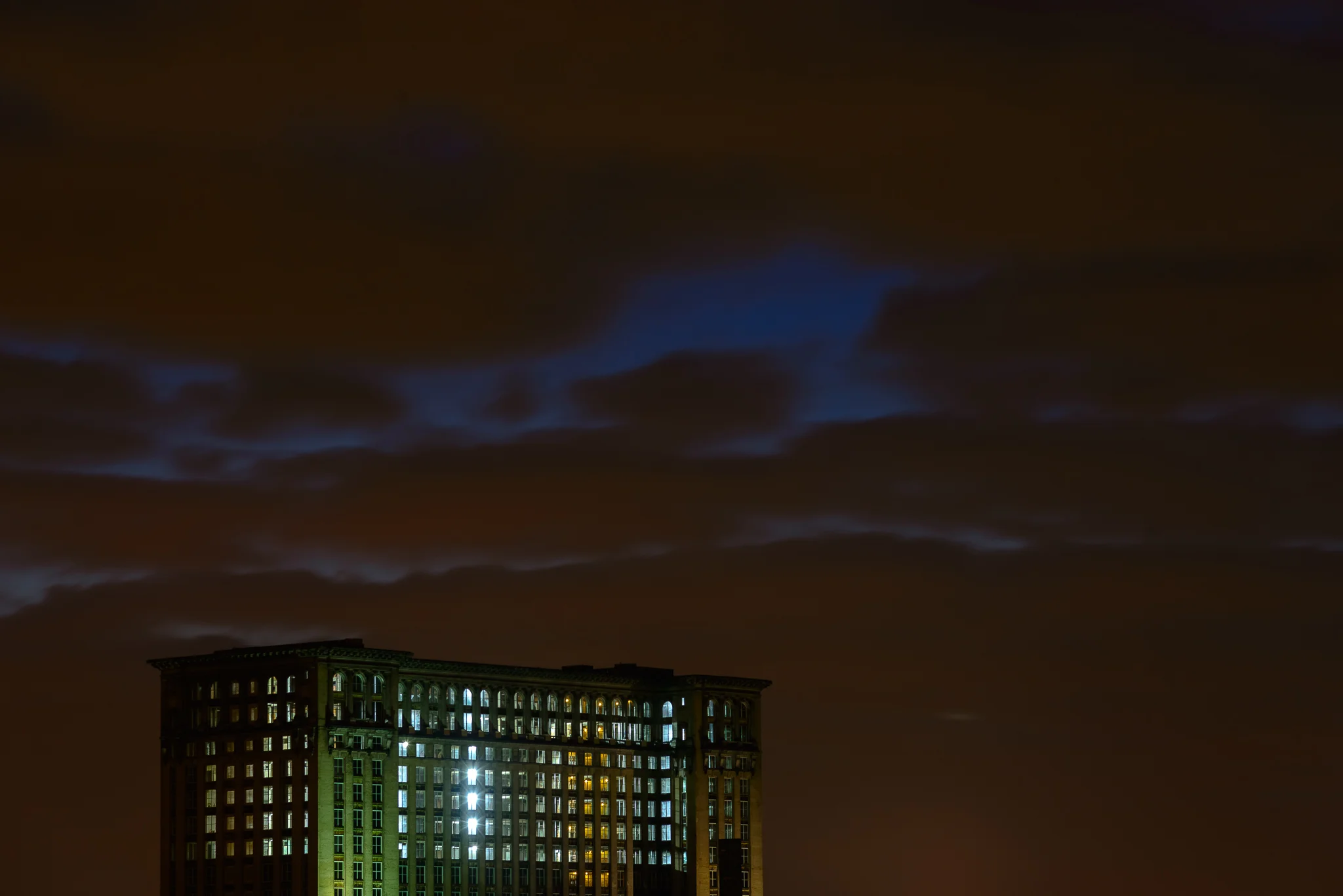 When I took my first photo of Michigan Central never did I expect this scene a year later. With all of the research I'd committed to and the familiarity I'd built, seeing this as anything but a dark silhouette night after night seemed unthinkable. As with any significant change in Detroit came the rumors. Lofts, offices, all it took were a few work lights to ignite everyone's imagination. Witnessing the most iconic building in Detroit awaken from it's perpetual slumber had me questioning everything I'd pointed my camera over the last year. As the fear of missing similar developments washed over me, I settled in knowing that while seemingly massive, this still is really just the start for Detroit.