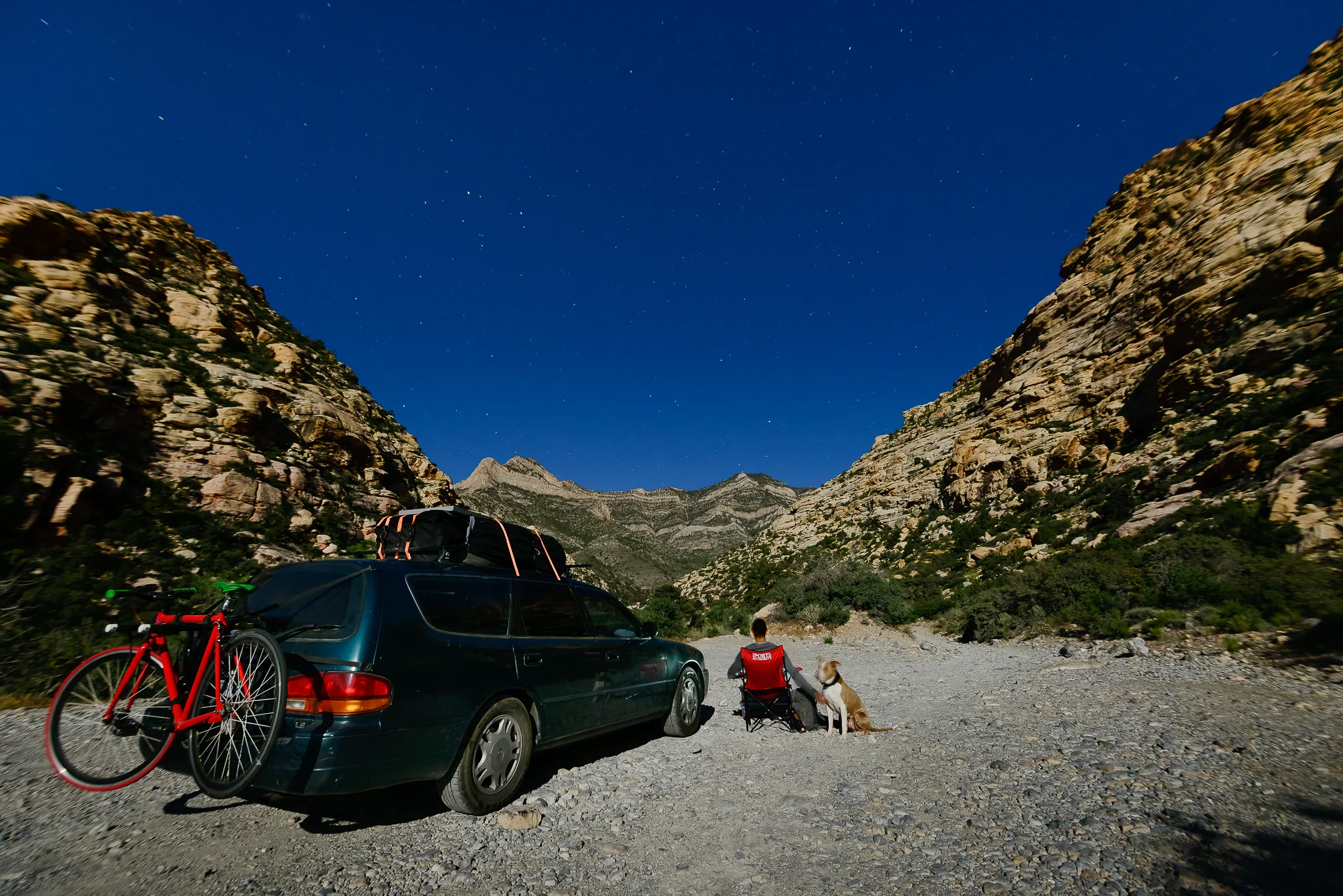 The Adventure Wagon. Nearly 20 years old and with close to $2K in new parts, all 4 cylinders were ready to limp through the next 3000 miles from LA to Detroit. It had been nearly 7 years since my first cross country journey in search of manifest destiny, now it was time to do a little return route and test my newfound knowledge and skills. Looking to pass through as many new locations as possible, I headed first for the Mojave Desert. Windows down, gear packed full, and pitbull in tow, it was time to cruise.